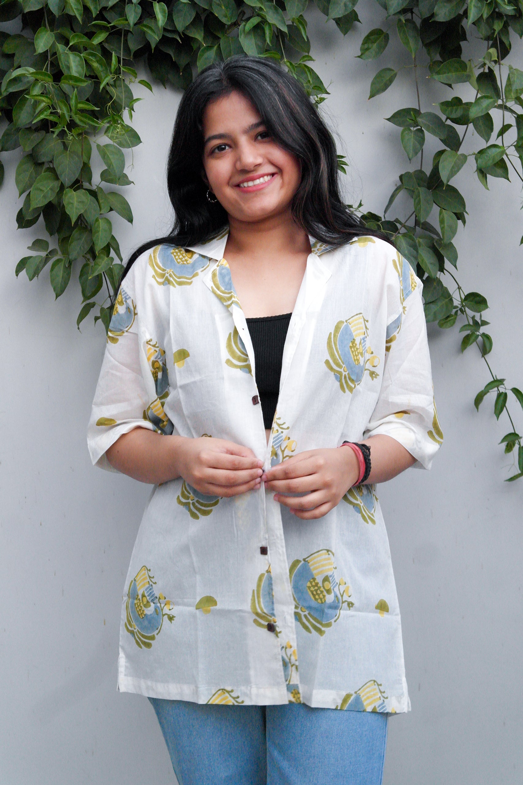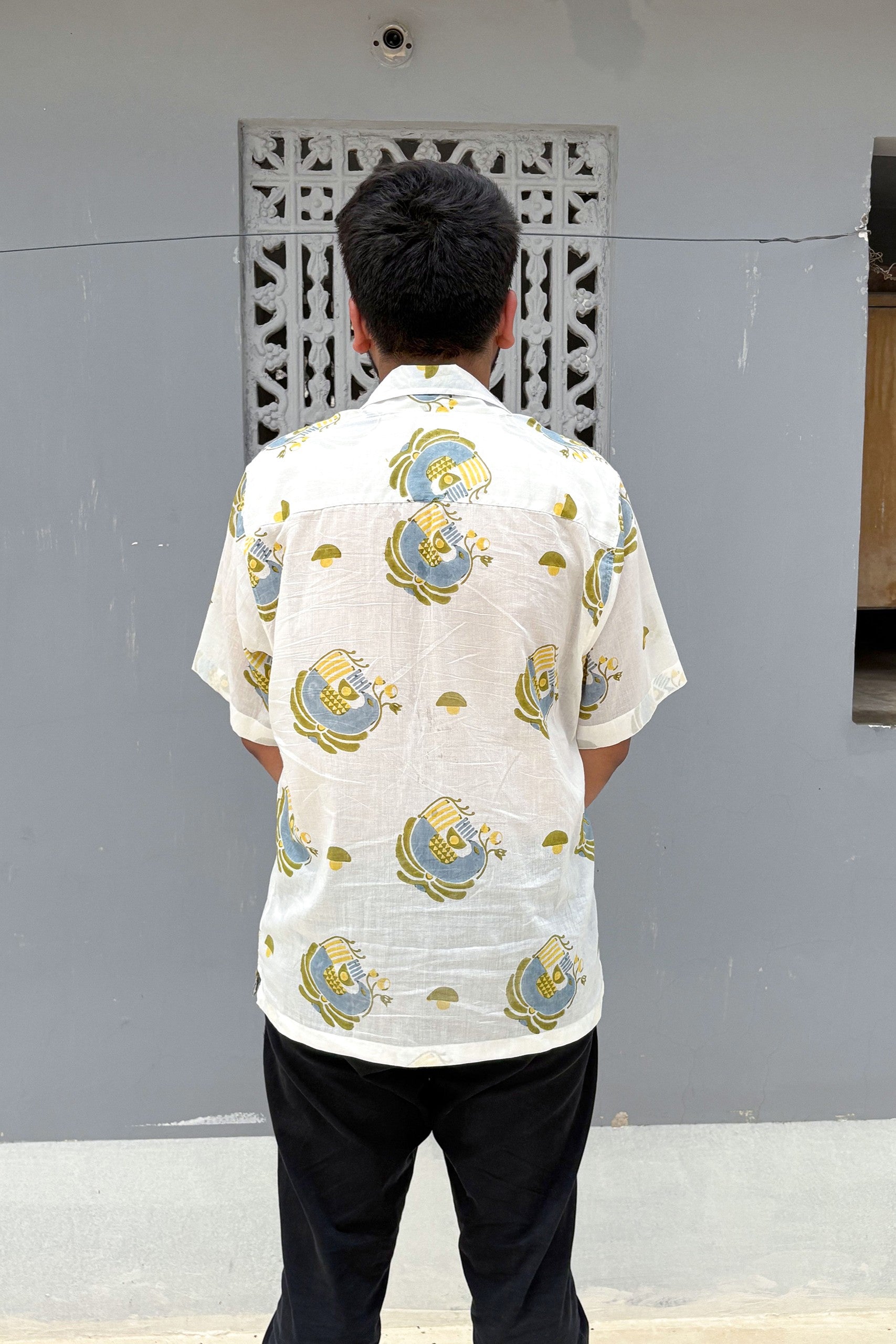 This unisex shirt exudes an effortless elegance, blending minimalism with a splash of playfulness. Cut in an oversized, breezy silhouette with short sleeves and a soft camp collar, it’s perfect for warm days, seaside strolls, or adding a tropical note to an urban outfit. Its lightweight fabric drapes naturally, offering both comfort and understated sophistication.